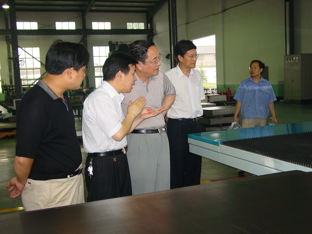 圖為7月9日,中共中央政治局委員、湖北省委書記俞正聲(左三),在天門市委書記王建鳴(左四)、市長別必雄(左一)和天門紡機公司總經理沈方勇(左二)的陪同下,考察該公司國家級“火炬計劃”項目的場景。