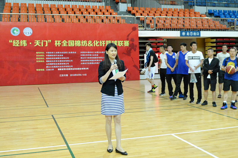 作為本次比賽的兩家冠名單位,中國紡織機械(集團)有限公司工會主席庫冠群代表經緯紡織機械股份有限公司致辭,湖北天門紡織機械股份有限公司黨委書記魯德文在致辭中表示:天門紡機應邀參加本次聯賽,并有幸成為冠名單位之一,旨在以籃球的名義為促進紡織文化的交流盡綿薄之力。
