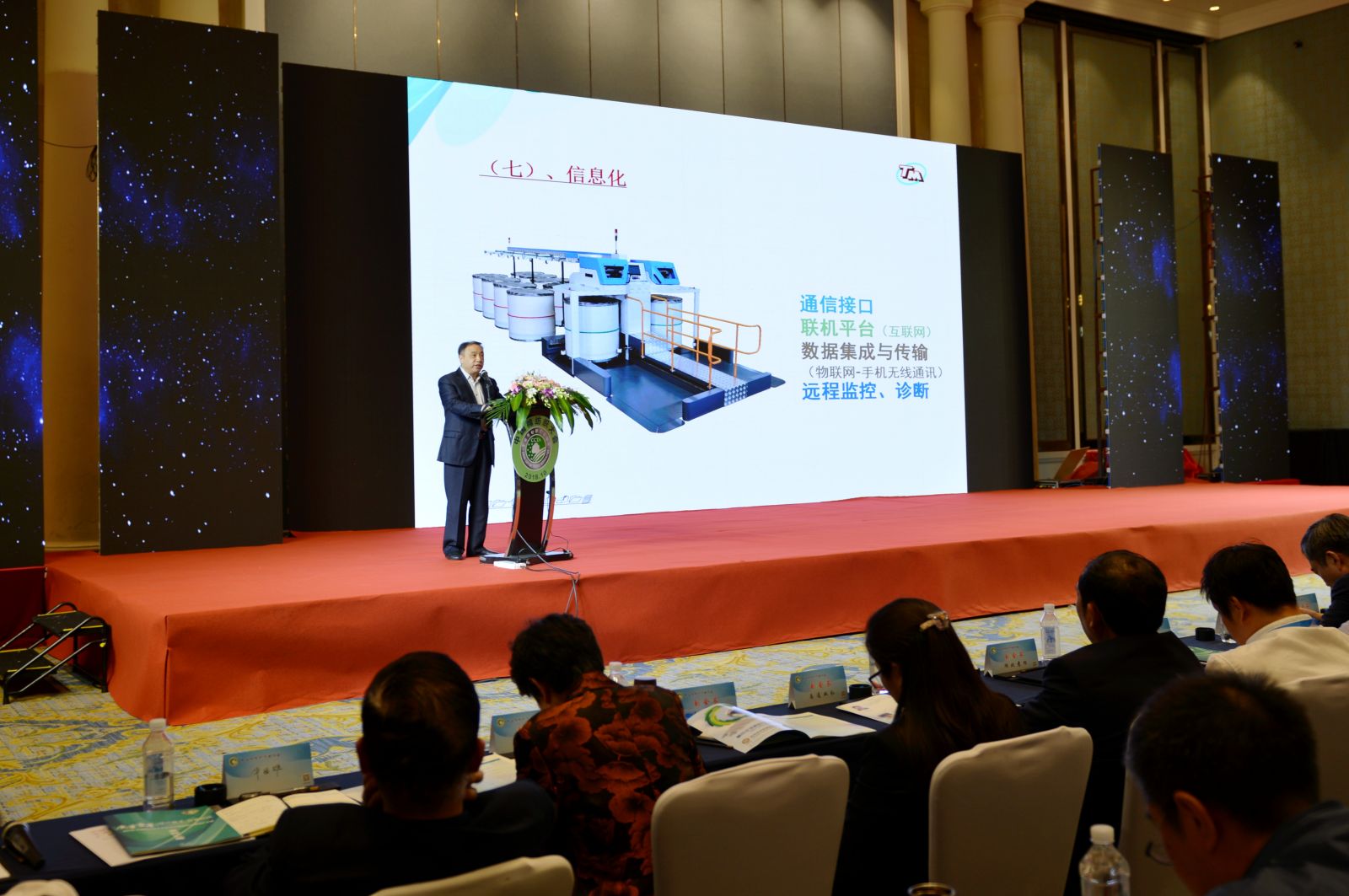 天門紡機總經理焦倫進在“2018中國棉紡織大會暨第五屆第四次理事擴大會”作專題演講