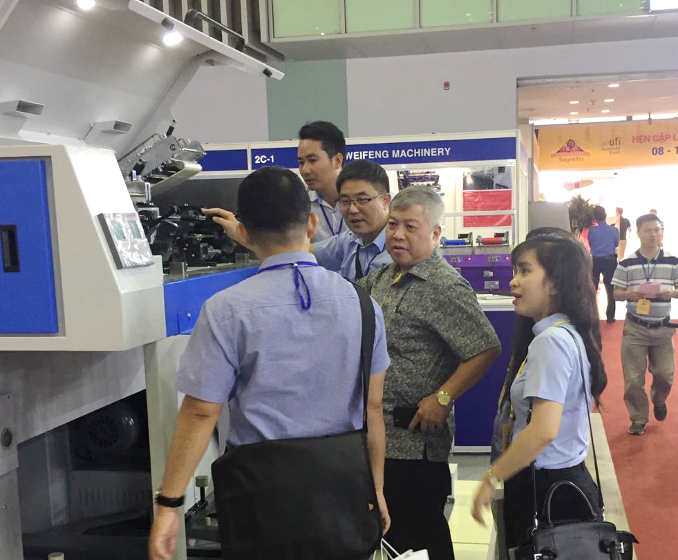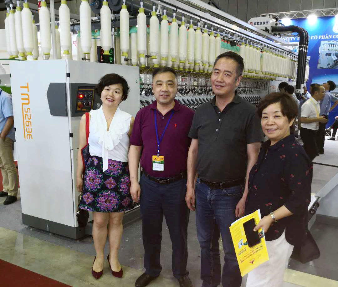 在展會上,位于A2-2D-1湖北天門紡織機(jī)械股份有限公司展位人頭攢動(dòng)、客戶云集,成為整個(gè)展會的一大亮點(diǎn),VINATEX NAM DINH、VICOTEX、 成功紡織、臺灣興業(yè)、臺南紡織、東光公司等當(dāng)?shù)仄髽I(yè)負(fù)責(zé)人親赴現(xiàn)場參觀,華孚時(shí)尚董事長孫偉挺等嘉賓在天門紡機(jī)展位認(rèn)真觀看設(shè)備演示,詳細(xì)了解了產(chǎn)品的新性能和新工藝,對天門紡機(jī)并條機(jī)與細(xì)紗機(jī)兩款展機(jī)給與高度評價(jià)。