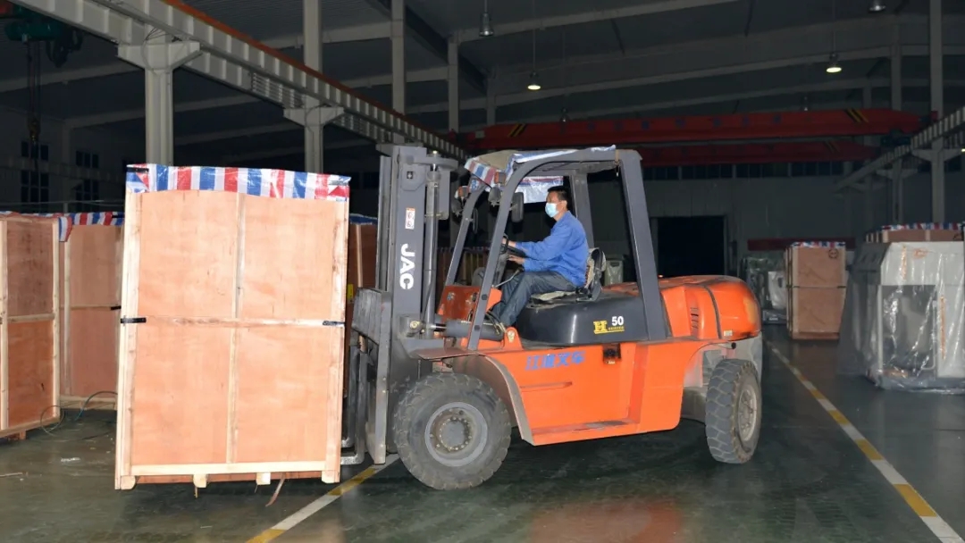 為了能夠盡快給客戶發貨,天門紡機想方設法,協調了各方資源,克服了重重困難,終于開啟了發貨模式。春節前天門紡機根據2020年上半年的銷售合同和全年的市場預測,物資采購充足,資金準備充足,同時加班加點,完成了一季度需發貨的并條機生產任務,并適當地庫存了一些產品,對客戶的供貨暫時不會造成影響。