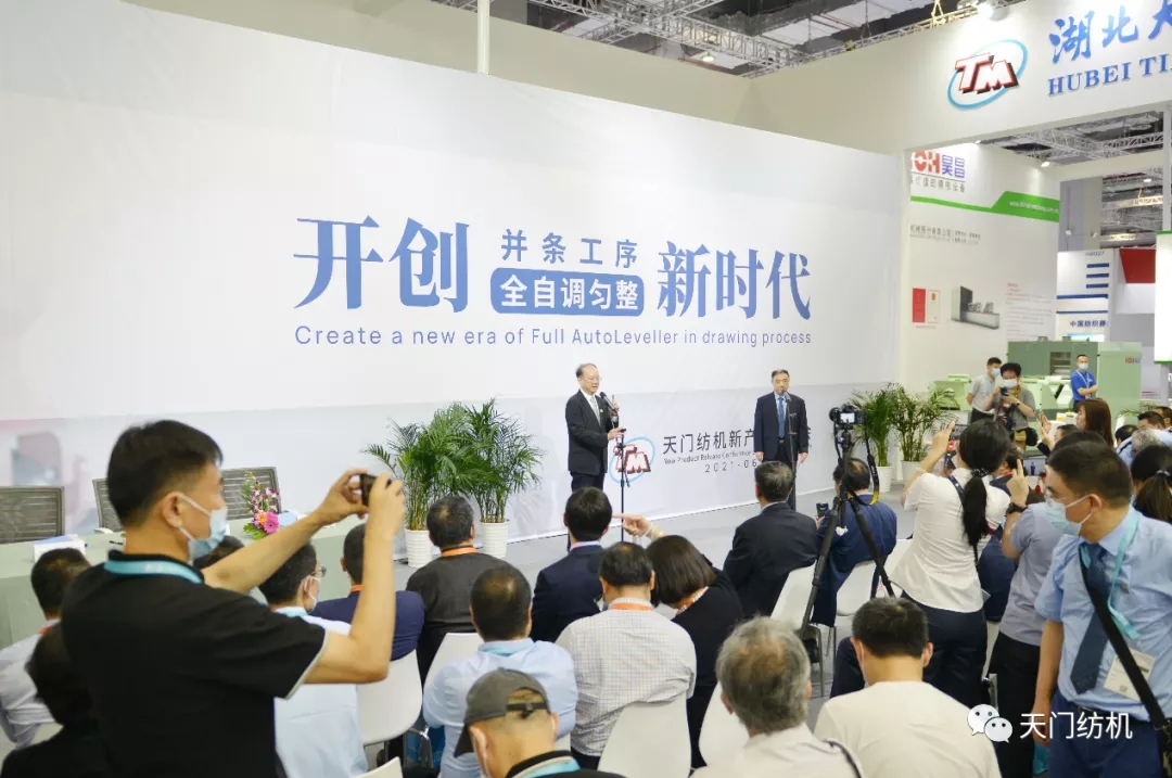 2021年6月12日,天門紡機(jī)在上海中國國際紡織機(jī)械展覽會暨ITMA亞洲展覽會上,舉行“開創(chuàng)并條工序全自調(diào)勻整新時代”新品發(fā)布會
