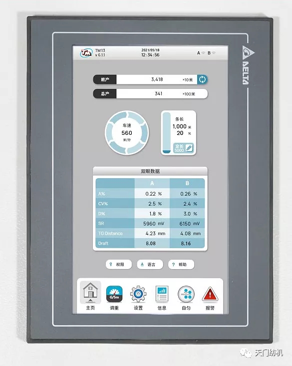 天門紡機在新一代T1系列并條機設計中,創新性地融入“系統化、人性化、圖形化”的設計理念。