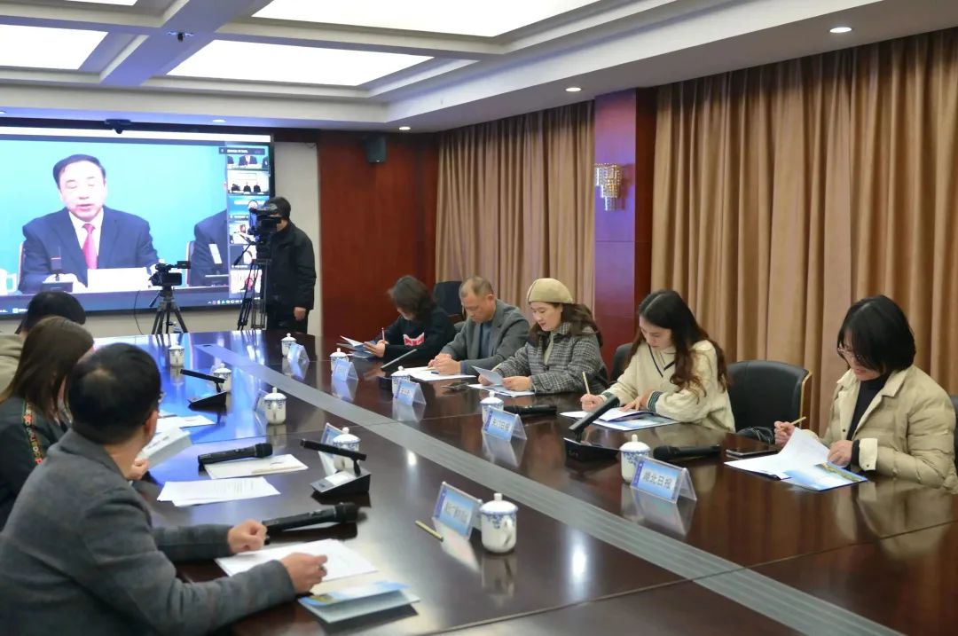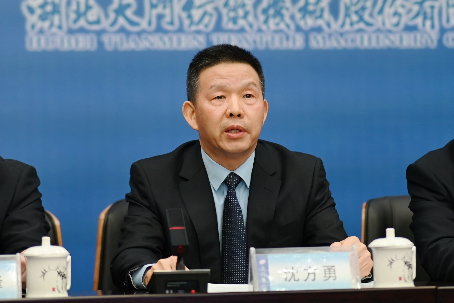 媒體提問結束后,沈方勇董事長率公司同仁向大力支持召開本次媒體見面會的天門市委宣傳部、融媒體中心及蒞臨會議的各媒體朋友表達了感激之情,并提前向長期支持關心天門紡機發展的各界同仁和廣大用戶拜年。