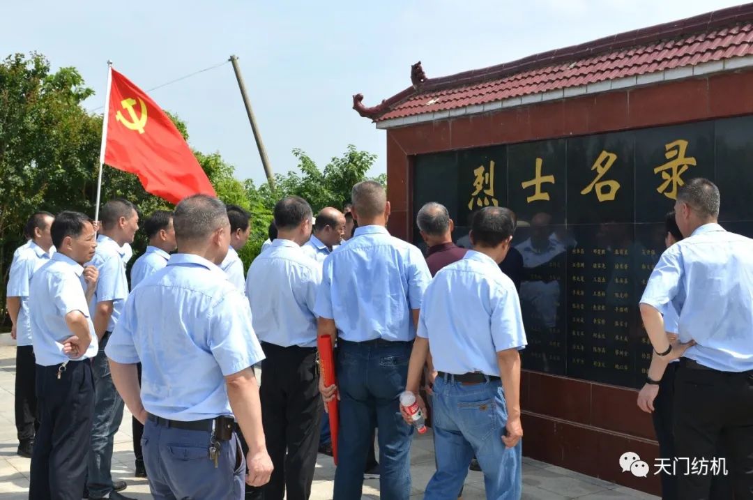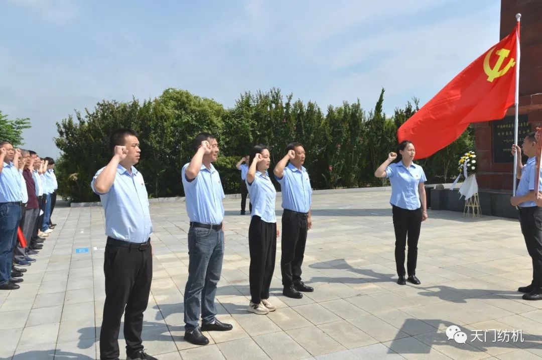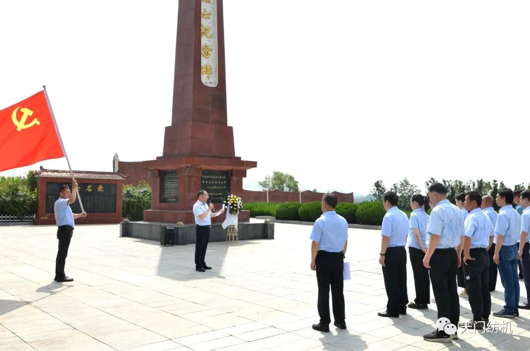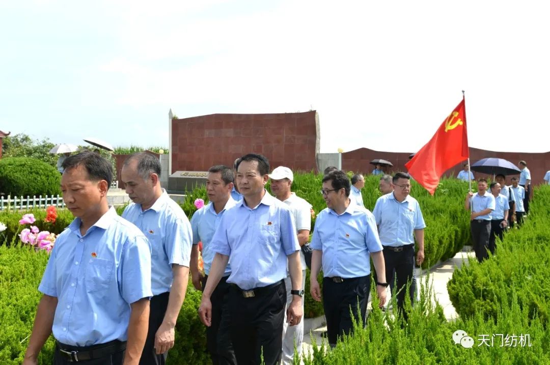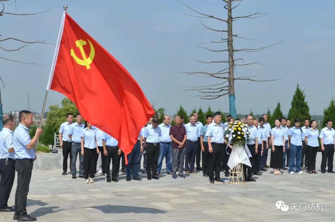 2023年7月1日上午,天門紡機(jī)近50名黨員懷著崇高的敬意,來到鐘祥長(zhǎng)灘烈士陵園,舉行“慶祝中國(guó)共產(chǎn)黨誕辰102周年”主題黨日活動(dòng),追憶光輝歲月,緬懷革命先烈,接受精神洗禮。