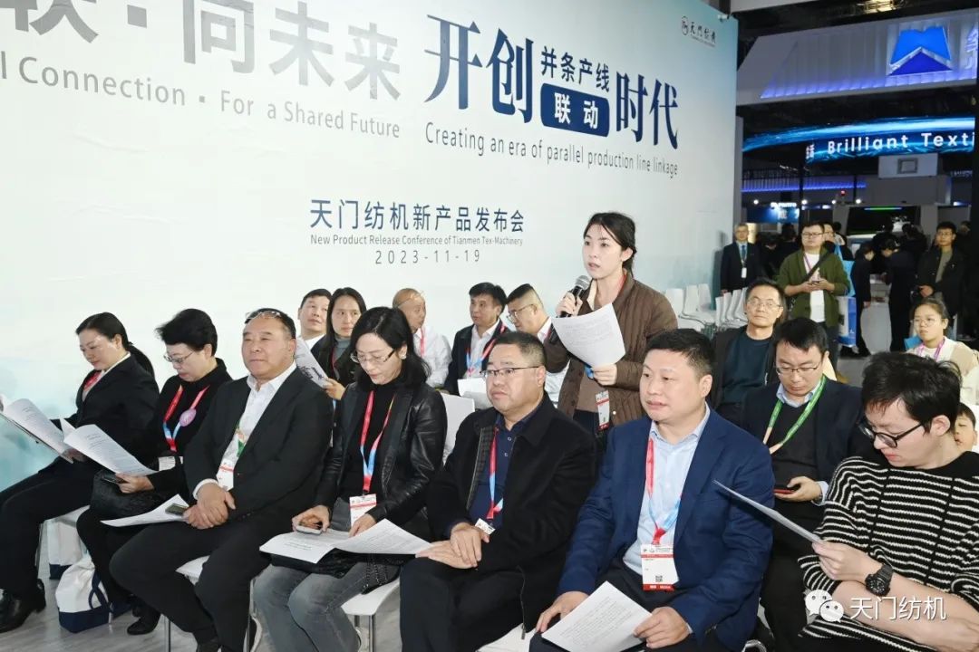 2023年11月19日,2022中國國際紡織機械展覽會暨ITMA亞洲展在國家會展中心(上海)拉開帷幕,天門紡機在展會上召開了主題為“智并聯?向未來——開創并條產線聯動時代”的新產品發布會。
