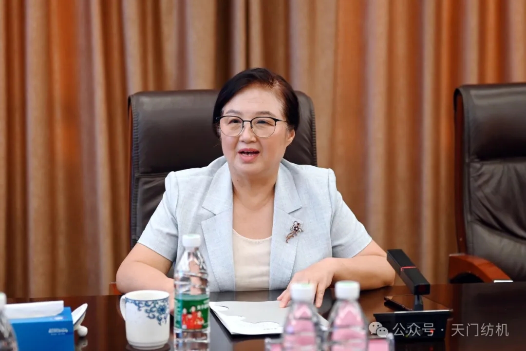 王玲主任聽完匯報(bào)后,對(duì)天門市委、政府強(qiáng)烈的責(zé)任擔(dān)當(dāng)、創(chuàng)新的理念思維、果敢的行動(dòng)措施以及若干工作指標(biāo)在全省爭先競位的優(yōu)異表現(xiàn)給予了充分肯定和贊賞,并就如何進(jìn)一步做大做強(qiáng)服裝電商產(chǎn)業(yè)等問題,提出了“擴(kuò)大全球視野、強(qiáng)化平臺(tái)建設(shè)、提高品牌效應(yīng)、優(yōu)化協(xié)作機(jī)制、整合社會(huì)資源”等方面的意見和建議。王玲主任在肯定天門紡機(jī)面對(duì)機(jī)遇挑戰(zhàn)取得良好經(jīng)營業(yè)績的同時(shí),對(duì)沈方勇董事長給予了很高的評(píng)價(jià)。她強(qiáng)調(diào),沈方勇同志身為十三屆全國人大代表和中國紡機(jī)協(xié)會(huì)副會(huì)長,有很強(qiáng)的社會(huì)責(zé)任感和民族工業(yè)情懷,有不斷創(chuàng)新的發(fā)展理念與思維,有優(yōu)秀的個(gè)人品質(zhì)和意志力。他幾十年如一日心無旁騖,堅(jiān)守實(shí)業(yè),堅(jiān)持紡織機(jī)械主業(yè),將傳統(tǒng)產(chǎn)業(yè)打造成具有國際競爭力和影響力的明星企業(yè),成為地方的一張名片和行業(yè)的一面旗幟。她希望天門紡機(jī)在沈方勇同志的帶領(lǐng)下,積極響應(yīng)黨中央、國務(wù)院關(guān)于推動(dòng)“兩新”的號(hào)召,抓住國家新一輪經(jīng)濟(jì)增長的契機(jī),促進(jìn)更快更好地發(fā)展,為地方經(jīng)濟(jì)和行業(yè)高質(zhì)量發(fā)展作出更大貢獻(xiàn)。
