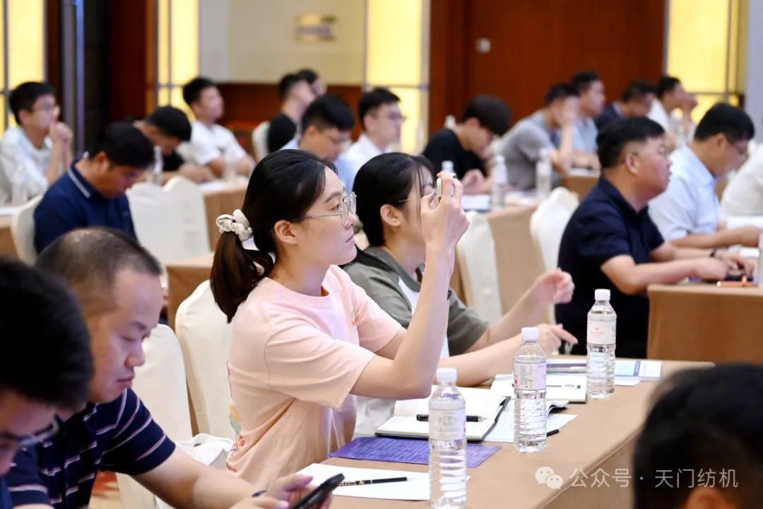 中國棉紡織行業協會會長董奎勇,中國棉紡織行業協會副會長景慎全,陜西省紡織科學研究院有限公司黨委書記、總經理徐遠志,江蘇省紡織工業協會名譽會長謝明,江蘇省棉紡專業委員會主任陳忠,東華大學教授程隆棣,無錫一棉紡織集團有限公司黨委副書記、總經理季承,湖北天門紡織機械股份有限公司總經理焦倫進攜同副總經理肖少華、市場總監周志宏、品控總監樊早斌等領導和專家出席了會議。來自全國140余家紡織產業鏈企業、紡織院校、研究院所的代表參會齊聚一堂,共同交流探討紡紗智能化新動態、新路徑、新成果。大會對現場進行了網絡直播,累計數千人次通過網絡觀看了直播。