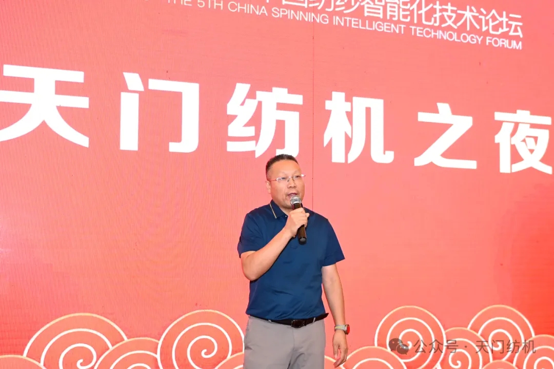 天門紡機總經理焦倫進作了熱情洋溢的致辭。他說,棉紡織行業在嚴峻復雜的國際環境影響下,受到原料供應端沖擊及終端有效需求不足的雙向擠壓,恢復力度偏弱,旺季不旺、淡季延續局面長時間維持,行業承受壓力極其明顯。面對困難與挑戰,我們既要增強風險意識和底線思維,積極主動應戰;又要保持戰略定力,通過發展新質生產力,提高創新能力和全要素生產率,加快數字化轉型和智能化改造,推動裝備技術升級,實現高質量發展。同時,要堅定發展信心,加速闖過新舊動能轉換陣痛期,強化行業自律,防止“內卷式”惡性競爭。