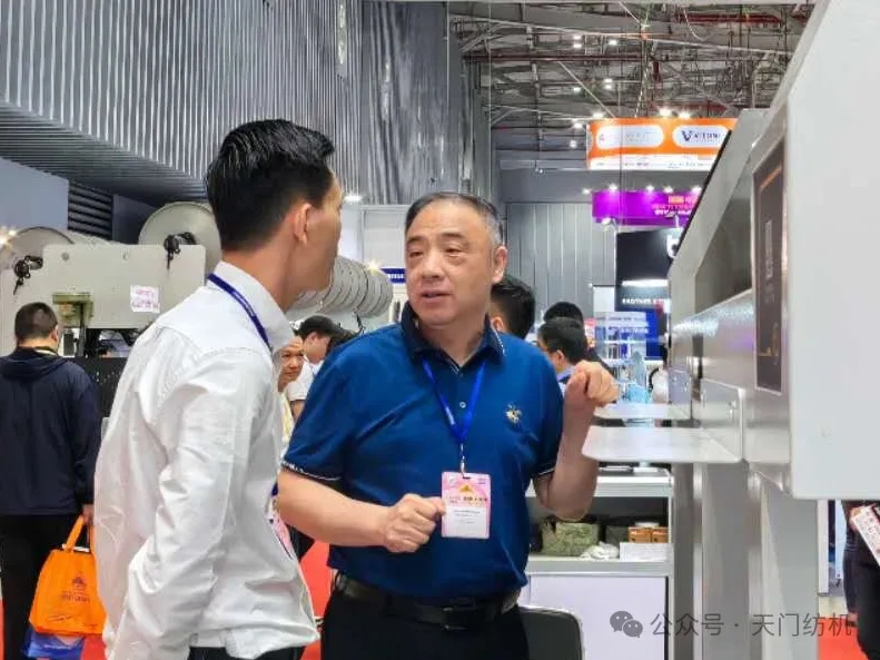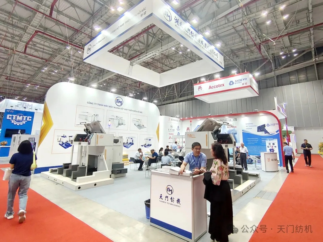 越南展會(huì)現(xiàn)場人流如織,其中天門紡機(jī)展區(qū)尤為矚目,開展期間分別迎來HANO SIMEX、VICOTEX、HONG LINH、NHA TRANG、THANG CONG、PHU BAI等50余家越南紡企的到訪,T1系列并條機(jī)憑借卓越性能表現(xiàn),引發(fā)現(xiàn)場觀眾駐足,多位老客戶對T1系列并條機(jī)的穩(wěn)定性與高效產(chǎn)能給予高度評價(jià)。